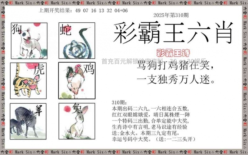 开:今期解生肖虎牛羊兔龙猪,特码开狗20中