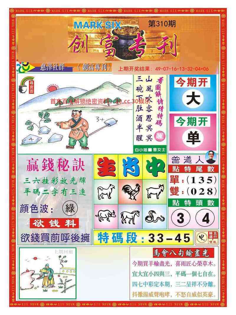 313期:正版创富网:九死一生后上发,蓝波双数就是它
